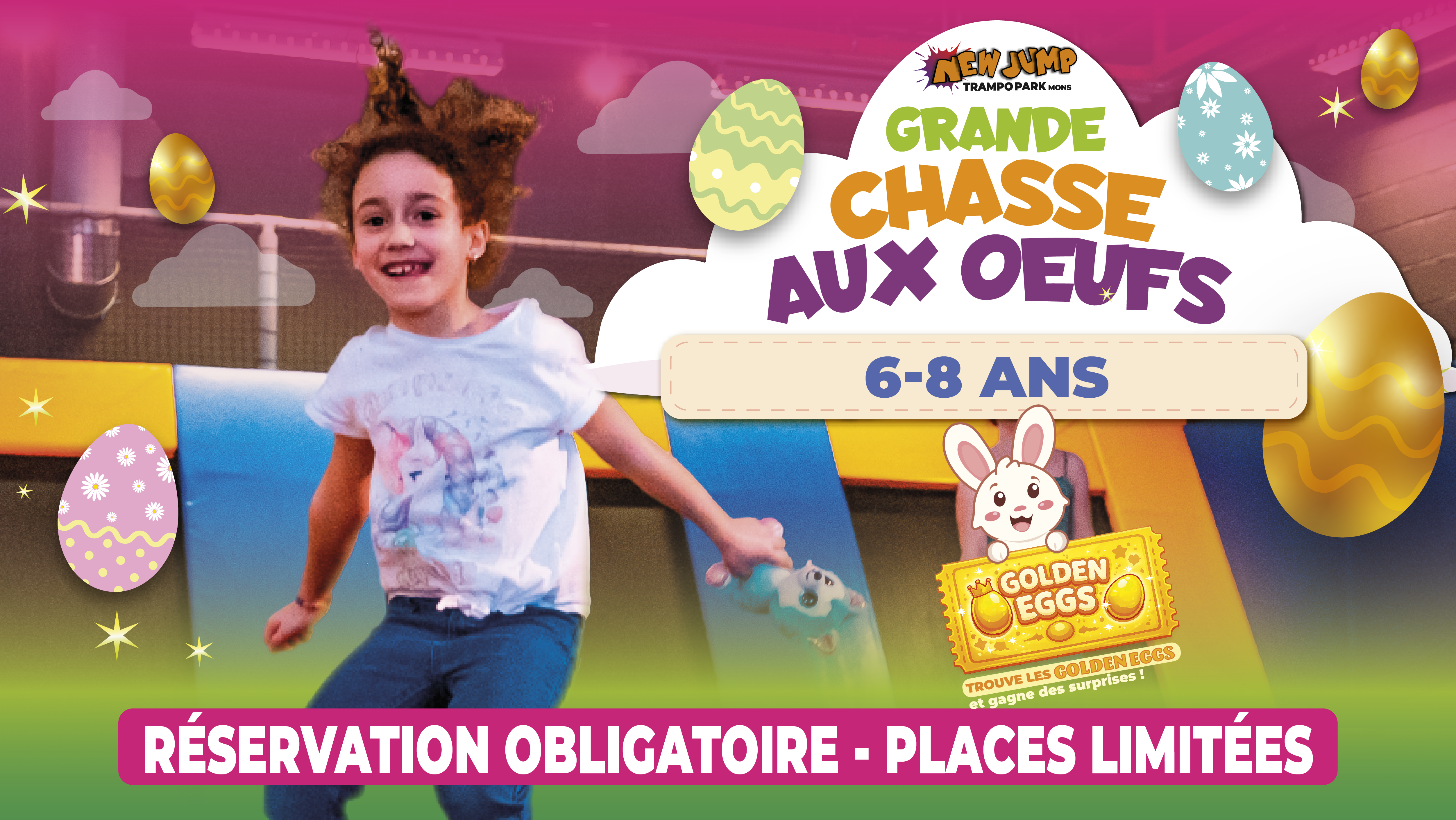 Viens fêter Pâques avec ta famille dans notre parc à trampoline New Jump Mons.